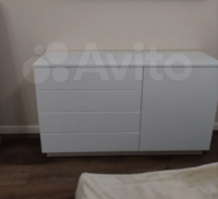 Четыре вместительных выдвижных ящика позволят организовать хранение одежды, белья или других вещей. За распашной дверцей скрывается удобная полка, идеально подходящая для хранения крупных предметов или вещей, которые нужно держать под рукой.