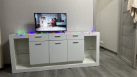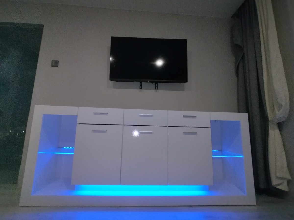 Три распашные дверцы: За каждой дверцей скрывается вместительная полка. Храните всё, что угодно – от книг и пледов до коллекционных предметов. Дверцы оснащены качественной фурнитурой, обеспечивающей долговечность и удобство использования.