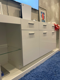 Две элегантные открытые ниши со стеклянными полками: Идеальное место для демонстрации ваших любимых ваз, статуэток или других декоративных элементов. Стеклянные полки добавляют легкости и воздушности конструкции, визуально расширяя пространство. Размеры ниш будут рассчитаны с учетом общих габаритов комода.