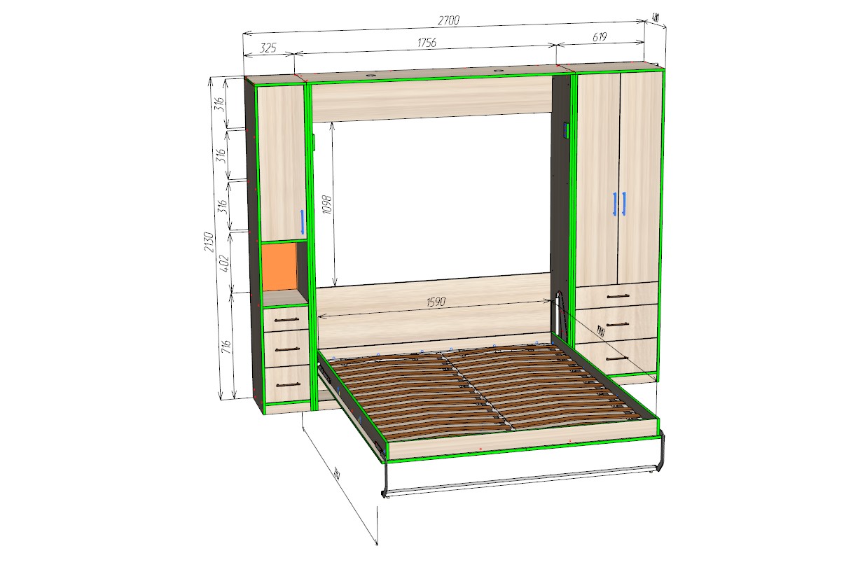 ⚠ Мы не рекомендуем использовать пружинные матрасы для шкафов-кроватей. Оптимальный выбор — лёгкие беспружинные матрасы из современных материалов, которые не деформируются при хранении в вертикальном положении и сохраняют форму.