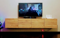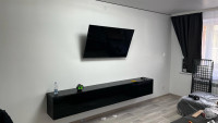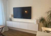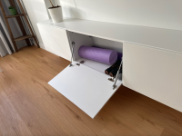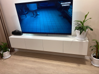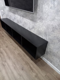 Модель оборудована четырьмя вместительными отделениями с откидными вниз дверцами на газлифтах. Такая конструкция удобна для хранения приставок, кабелей, пультов, документов и других мелочей, которые хочется держать под рукой, но вне поля зрения. Продуманная система хранения помогает поддерживать порядок в ТВ-зоне, а провода можно аккуратно скрыть за задней стенкой, сохранив аккуратный внешний вид.
