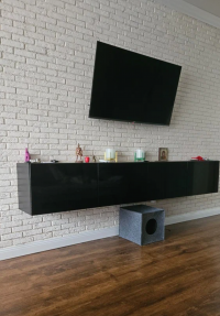 тумба полностью оправдала ожидания, единственный минус это крепеж. пришлось докупить отдельно, так как тот, что шёл в комплекте, слабоват.