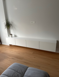 В целом неплохая тумба, фасады из софт-тач МДФ, сборка относительно несложная если делать по инструкции, (попросил продавца и мне прислали видео) вся фурнитура была в сборе. Я поставил 2 толкателя на каждую секцию. Заднюю стенку из ДВП не ставил. Большая, вместительная, за свои деньги вполне неплохо.