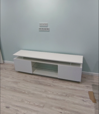 Хорошая тумба под тв, на одном углу маленькая царапина. За такие деньги норм. Все комплектующие есть.