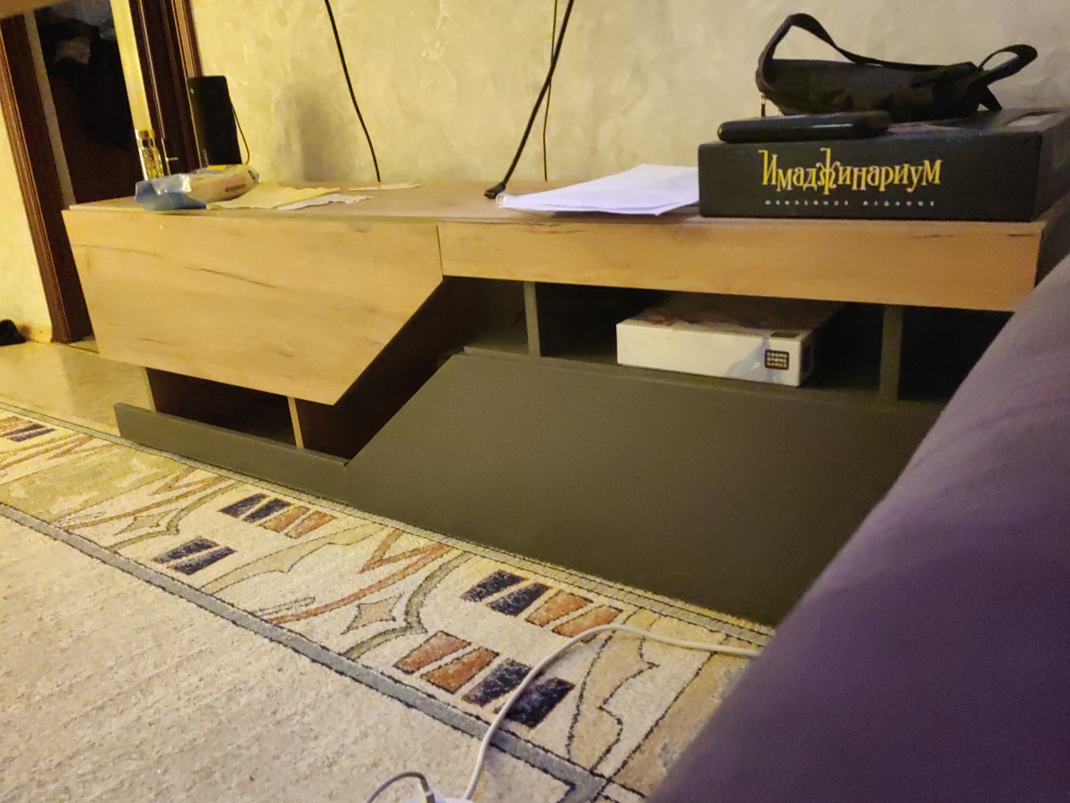 Интересный, незабитый дизайн. Качество просверленных отверстий. Очень ответственный, внимательный к покупателю и честный продавец.<br /> Есть небольшие дефекты на деталях в виде отсутствия финишного слоя в углах детали. Хорошо что всё оказалось внутри. Одна деталь чуть повреждена при доставке, прорублена обертка-коробка. Но незначительно, воском восстановили. Отверстия просверлены качественно, без сколов. Лишних или недостающих сверловок нет. Фурнитуры всей хватает. Цвет крафт золотой-яркий. Покупали у других производителей в таком же цвете другую мебель-была более серой. Эта-чуть-чуть отличается &quot;сочностью&quot;. Хочу выразить огромную благодарность за честный подход и ответственную работу с покупателями компании &quot;Мебелирити&quot;. Возникли небольшие проблемы с элементами дверей. Решили за один день. Сразу отвечают, не игнорируют. Сами предлагают решения по проблеме. А то в других компаниях вроде и пишут -свяжитесь с нами и мы решим&quot;- на самом деле на этом и заканчивается связь. К покупке рекомендую и именно у этого продавца. По сборке есть особенность. Сначала необходимо собрать одну часть полочек без основного днища и крышки. Затем вторую часть без основного днища и крышки. Потом соединить две части и только потом основное днище с уже смонтированными ножками.