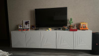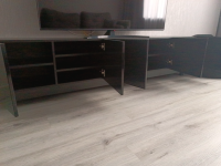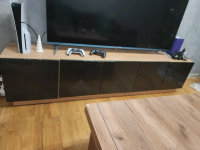 Модель отличается не только привлекательным внешним видом, но и удобной конструкцией. За распашными дверцами расположены вместительные полки, на которых можно аккуратно разместить ТВ-приставку, роутер, игровые аксессуары, документы и другие необходимые мелочи. Закрытые секции помогают поддерживать порядок и сохраняют визуальную легкость пространства.